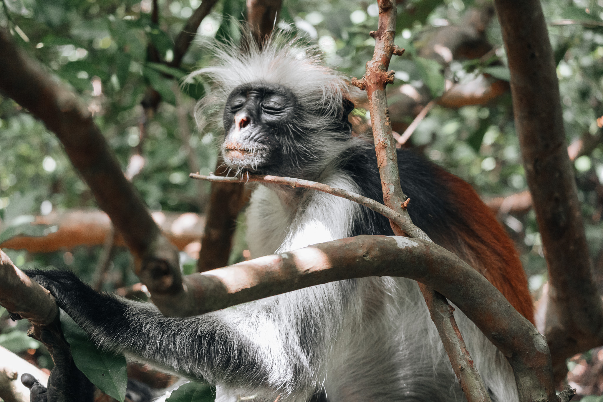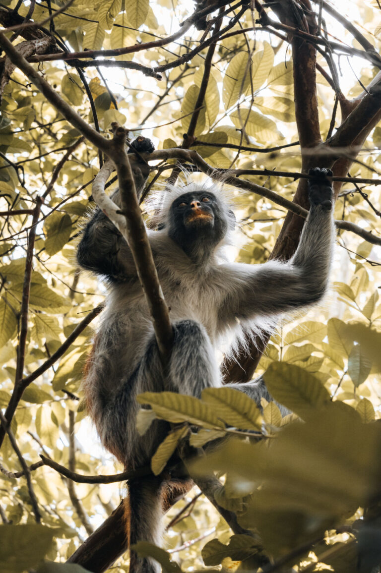 Národní park Jozani pokrývá jižní část ostrova a je to jediným místem na ostrově, kde se zachoval původní prales. My jsme se v tomto parku prošli s místním průvodcem a hned po vstupu jsme narazili na opice guerézy červené, které jsou pro tuto oblast endemické. Procházkou jsme došli k mangrovníkům, kde jsme se po dřevěných lávkách dostali hluboko do bažinaté krajiny plné kořenů a krabů, při přílivu sem natéká mořská voda, my jsme dorazili při odlivu, takže jsme viděli celé dno.
